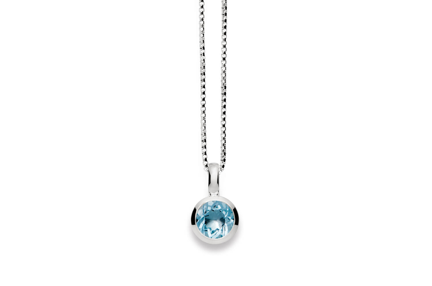 Basic mit unverwechselbarem Charme: Dieser Anhänger aus rhodiniertem, poliertem 925er Sterlingsilber mit Blautopas in der Farbe "Sky Blue" (1,70ct) im runden Normalschliff ist ein perfekter Begleiter für den Alltag.