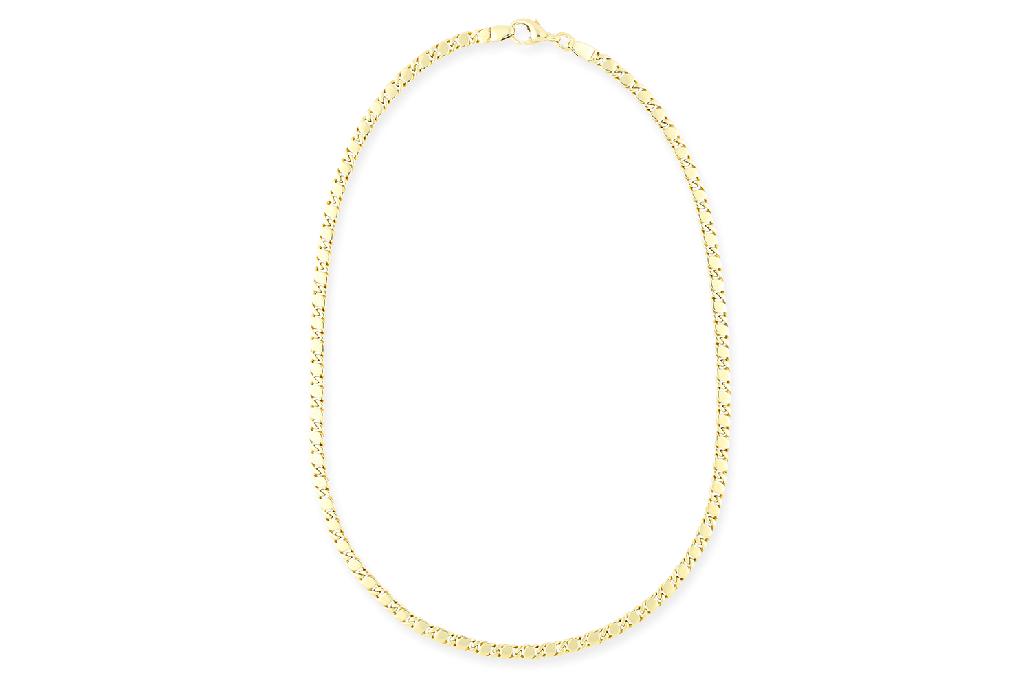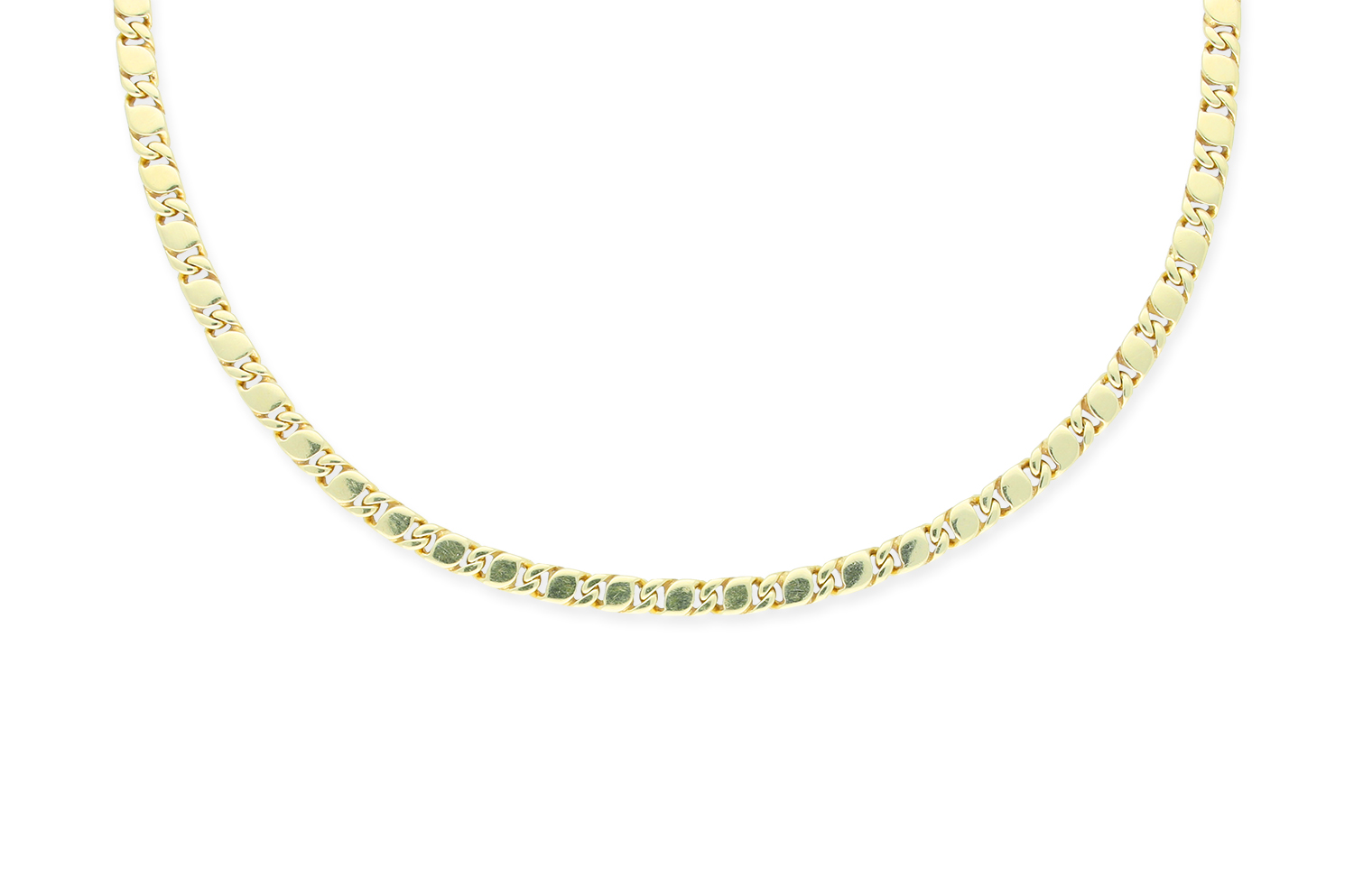 Halskette aus 585er Gold mit fein gearbeiteten, glänzenden Gliedern, die ein geschmeidiges und zugleich wertiges Erscheinungsbild erzeugen. Die elegante Verarbeitung verleiht der Kette eine zeitlose Ausstrahlung und macht sie vielseitig kombinierbar – ideal für die stilbewusste Person, die auf klassische Eleganz setzt.