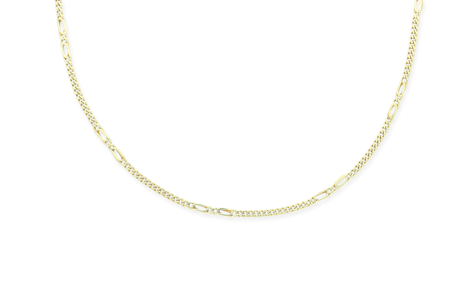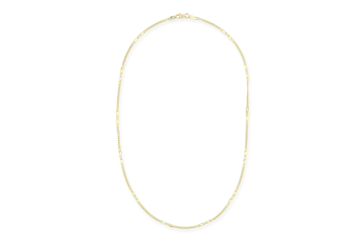 Diese elegante Kette aus 585er Gold begeistert durch ihre klassische Figaro-Gliederung, die zeitlose Schönheit und ausdrucksstarke Klarheit vereint. Mit ihrer Länge von 48 cm legt sie sich harmonisch um den Hals und sorgt für einen stilvollen Auftritt bei jedem Anlass. Das fein polierte Gold unterstreicht die hochwertige Verarbeitung und verleiht der Kette einen edlen Glanz. Dieses Schmuckstück passt perfekt zu allen, die ein klassisches Design mit dauerhaftem Wert schätzen.