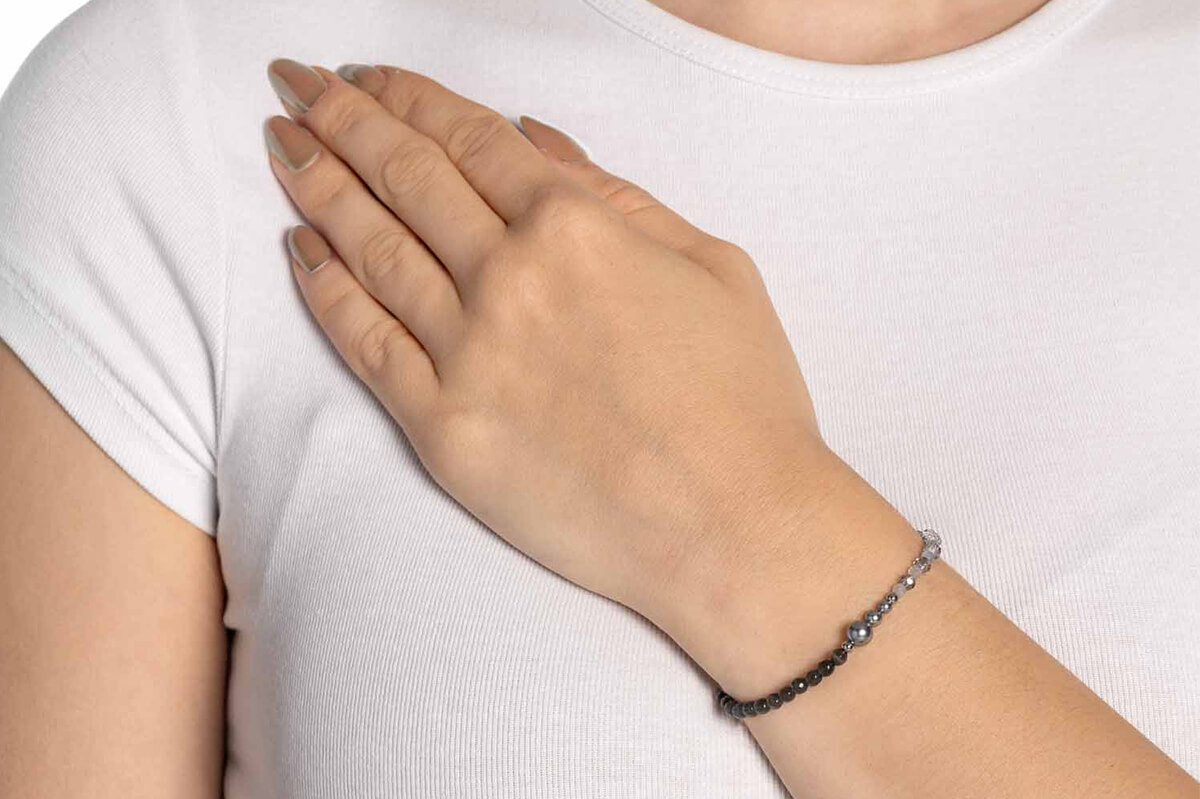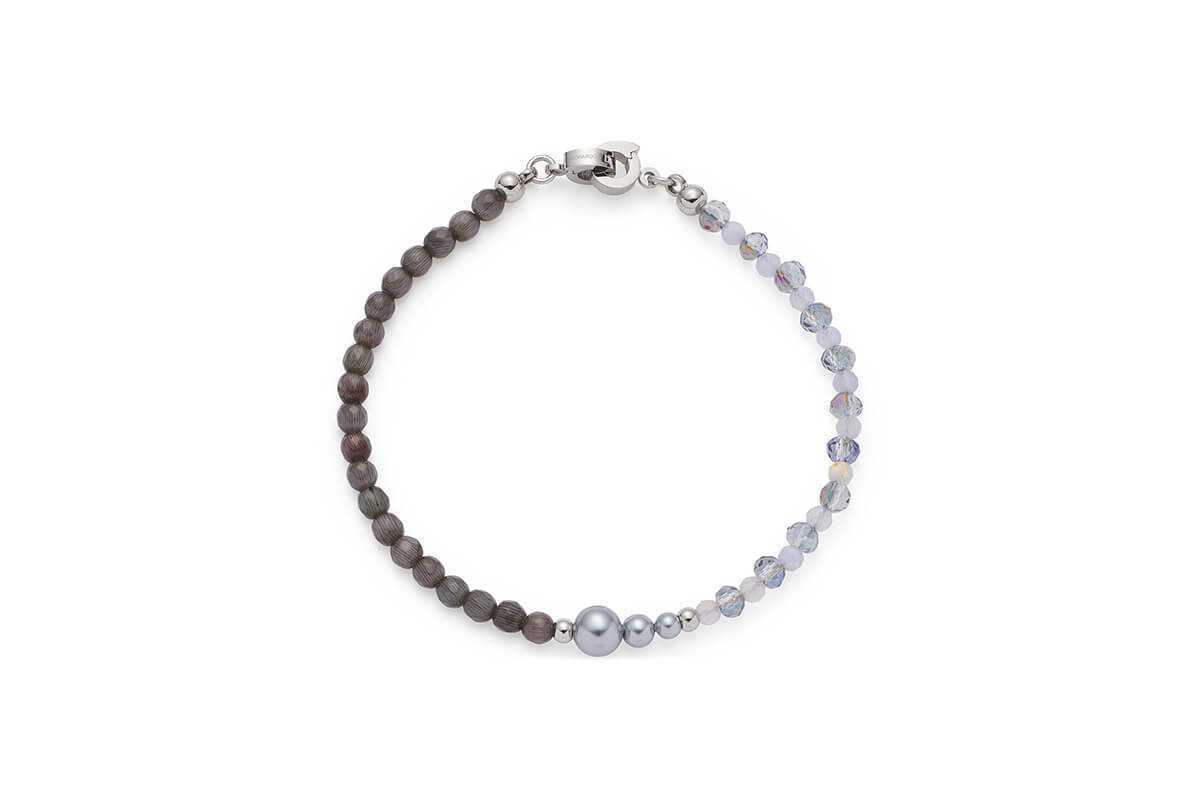 Armband Manon aus der Clip-&-Mix Serie von LEONARDO. Aus Edelstahl gefertigt, ergänzt es die gleichnamige Kette mit einem ebenso harmonischen Design aus Grau-Blau, Catseye-Perlen und sanften Naturtönen. Die stilvoll angeordneten Perlen verleihen Ihrem Handgelenk eine dezente und elegante Ausstrahlung. Dank der beiden Clips lässt sich das Armband nicht nur angenehm tragen, sondern auch als geschmackvolle Verlängerung in die Kette integrieren. So entsteht ein flexibles Schmuckstück, das Ihren Look perfekt abrundet – ob solo getragen oder im kreativen Zusammenspiel mit der passenden Kette. Ideal für die feminine Frau mit Sinn für stilvolle Details.