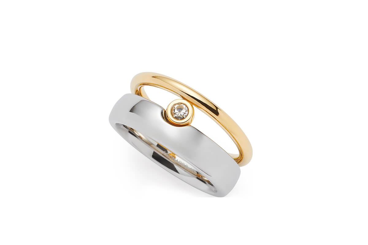 Der Ring Claire von LEONARDO steht für grafische Eleganz mit einem femininen Twist. Gefertigt aus Edelstahl und Zirkonia, vereint der stilvolle Bandring ein modernes Two-Tone-Design: Ein breiter, flacher Ring aus poliertem Edelstahl trifft auf einen zarten, goldfarbenen Drahtring. Verbunden werden beide Elemente durch einen fein gefassten Zirkonia-Stein, der dem Schmuckstück einen dezenten, eleganten Glanz verleiht. Die unterschiedlichen Metallfarben treffen sich an der Innenseite der Hand und verschmelzen zu einem angenehm zu tragenden, modernen Statement-Ring – ideal für minimalistische Looks oder als harmonischer Begleiter zu Bicolor-Schmuck.