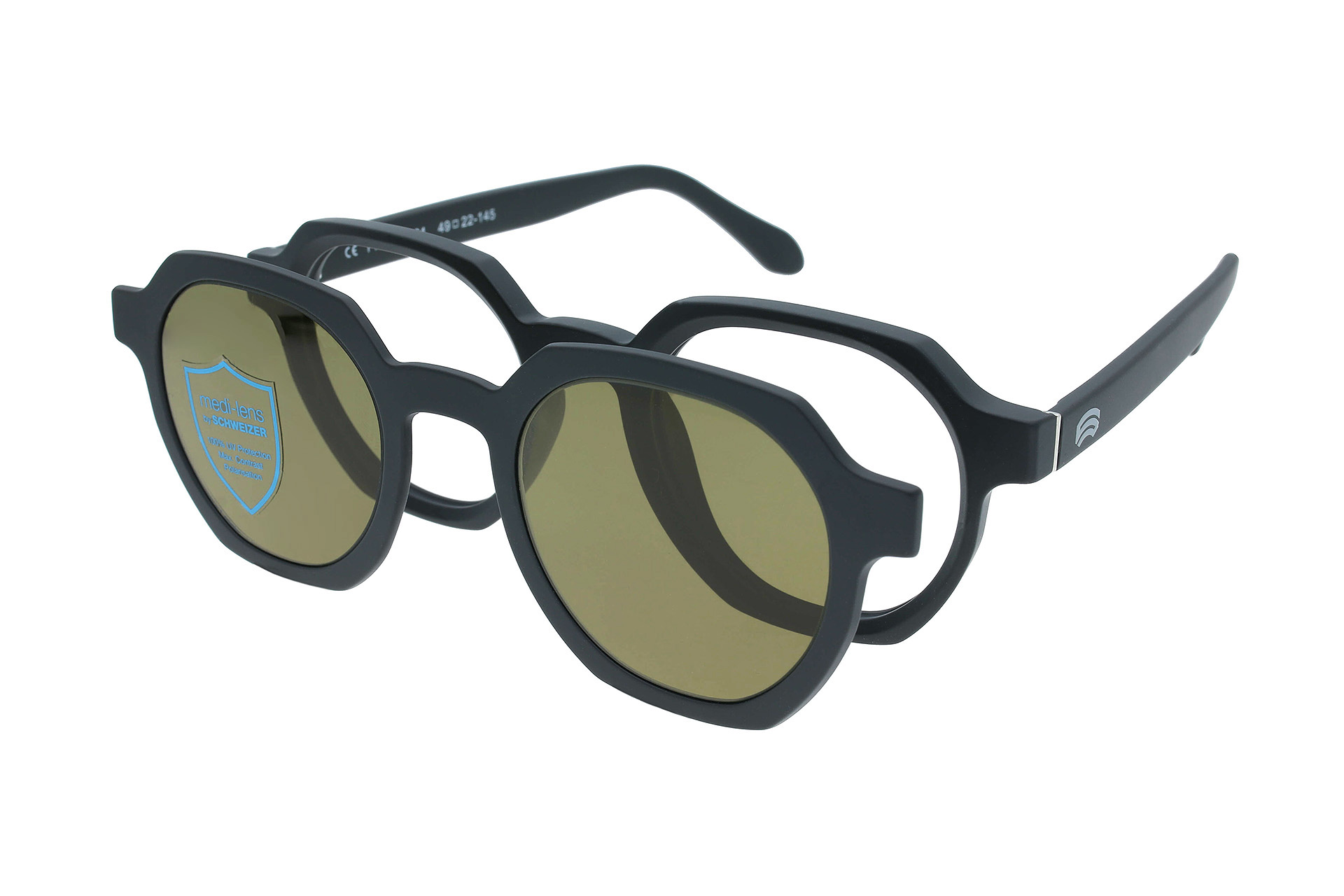 Brillenfassung von Schweizer mit medi-lens Komfortfilter Magnetclip C1 Pol1.