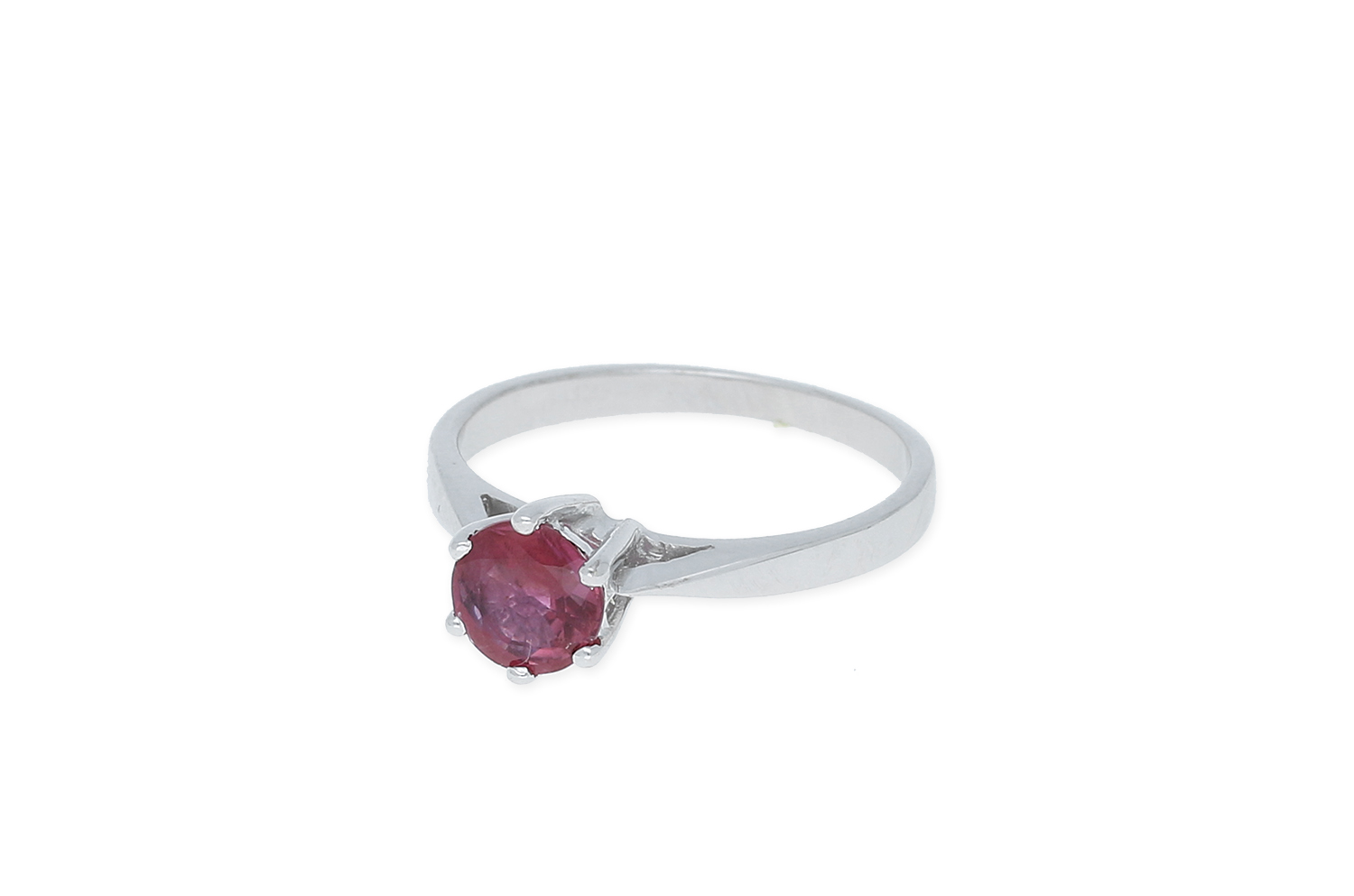 Ring aus 333er Weißgold mit einem oval geschliffenen Rubin, der in intensivem Rot erstrahlt und sofort ins Auge fällt. Die feine Krappenfassung hebt den Edelstein elegant hervor und sorgt für einen sicheren Halt. Die schlichte Ringschiene unterstreicht die klassische Ausstrahlung des Designs. Ein zeitloses Schmuckstück – ideal für die Frau, die edle Farbakzente und klassische Eleganz liebt.