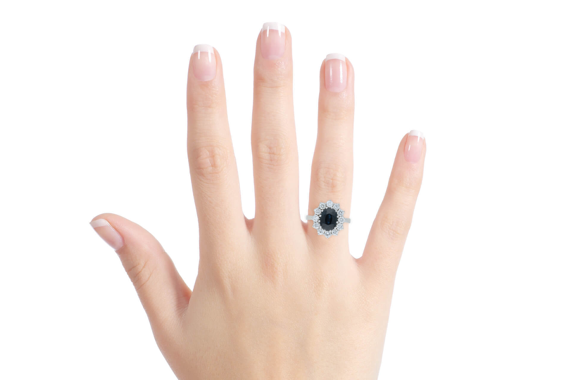 Dieser außergewöhnlich elegante Ring aus 585er Weißgold beeindruckt mit einem prachtvollen, tiefblauen Saphir als imposantem Mittelpunkt. Umrahmt wird der Edelstein von einem Kranz funkelnder Brillanten, die das intensive Blau des Saphirs eindrucksvoll hervorheben und für ein luxuriöses Lichtspiel sorgen. Ein besonders wertvolles Schmuckstück von erlesener Schönheit und zeitloser Eleganz – geschaffen für die anspruchsvolle Frau und besondere Momente von bleibendem Wert.