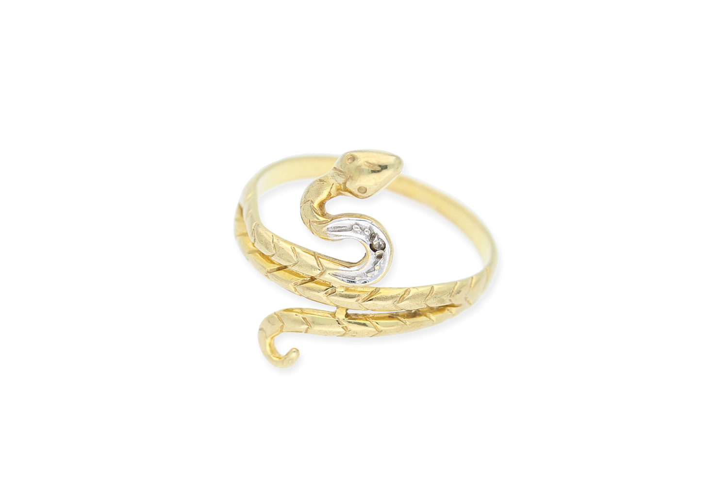 Eleganter Schlangenring aus 333er Gelb- und Weißgold, kunstvoll gewunden und fein strukturiert. Das Zusammenspiel der Goldtöne verleiht dem Design Bewegung und Ausdruck. Ein besonderes Schmuckstück – symbolisch für Wandlung, Stärke und Sinnlichkeit.