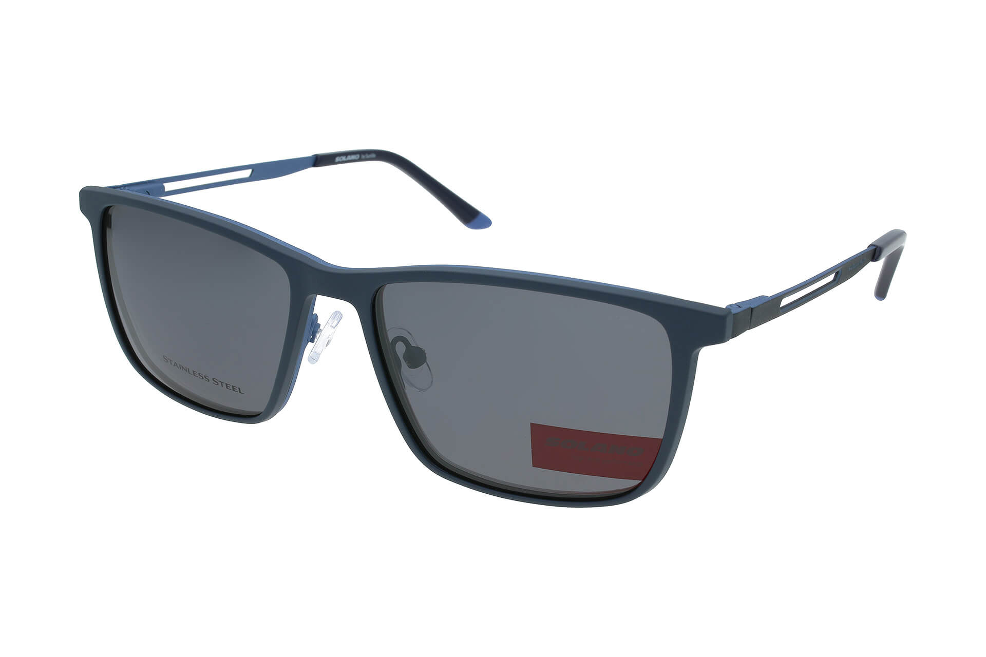 Mit den Solano Clip-On Modellen bekommen Sie zwei Brillen vereint in einem stylischen Rahmen. Der mitgelieferte polarisierte Sonnenclip wird von den unsichtbaren Magneten an der Rahmenfront gehalten. Brille und Clip verbinden sich dabei zu einer harmonischen, formschönen Einheit. Die Clips sind so kompakt, dass sie unterwegs ganz einfach in der Hosen- oder Hemdtasche aufbewahrt werden können. Zu den jeweiligen Modellen sind zudem Wechselclips in unterschiedlichen Farben ab 59€ erhältlich.