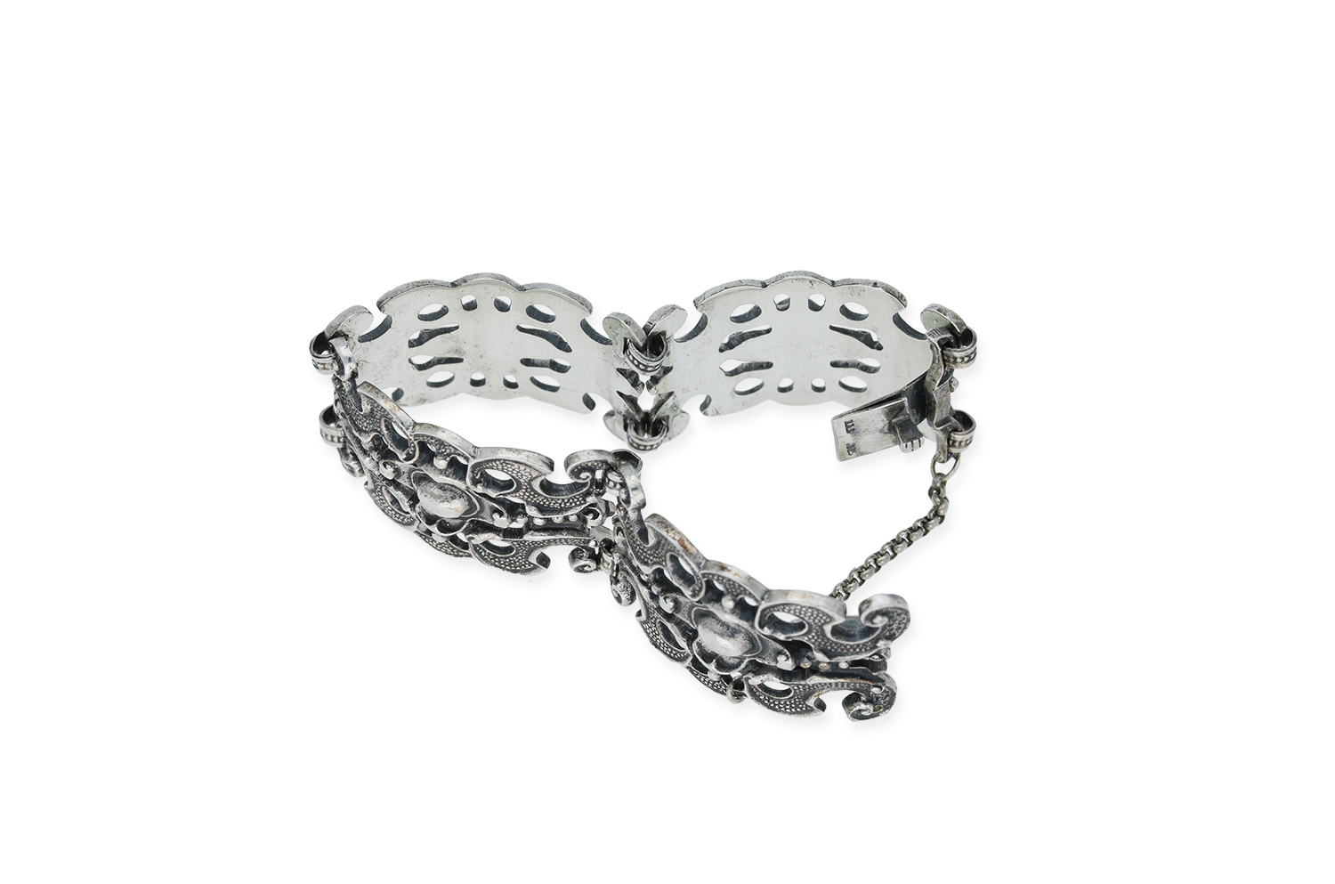 Dieses kunstvoll gestaltete Trachtarmband aus 925er Silber besticht durch seine detailreichen Ornamente und die markante, traditionelle Ausarbeitung. Die aufwendig gearbeiteten Glieder verleihen dem Schmuckstück eine ausdrucksstarke Präsenz und unterstreichen seinen authentischen Charakter. Dank des sicheren Verschlusses bietet das Armband zudem einen angenehmen Tragekomfort. Ein besonderes Schmuckstück für alle, die Tradition, Handwerkskunst und Individualität stilvoll miteinander verbinden möchten.